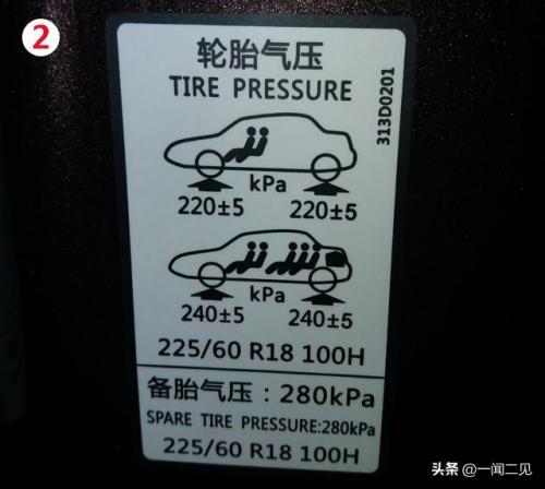 除了汽车的使用手册中有明确说明外,车友们还可以在车身的标签上找到。胎压标签一般会出现在以下位置: