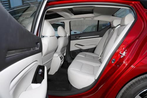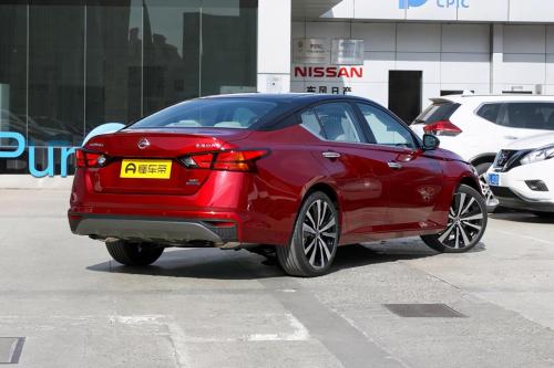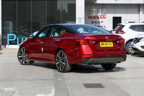 从尾端看来,天籁的造型设计比较别具一格,质感明晰的后尾设计,促使它有着非常好的视觉冲击。而一对与前脸部分产生衬托效果的后尾灯的添加,也是让其辨识度提升许多。但缺憾的是,新款天籁选用的是内藏式布局,因此它的速度感并不太明显。