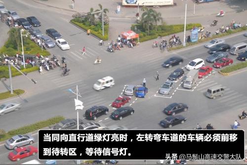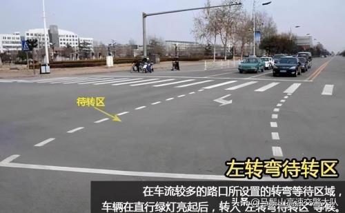 待转区常常出现在车道较多,路面情况复杂的交通路口,为了提高通过量,设立左转弯待转区,允许车辆在直行绿灯亮起后,进入"左转弯待转区"等候。需要注意的是,如果在直行灯和左转灯都是红灯不能进入待转区,否则按闯红灯处罚。