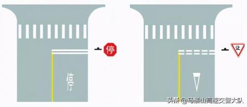 双白色实线为停车让行线,一般路上都会写有大大的"停"字。这表示车辆在此路口必须停车让干道车辆先行。