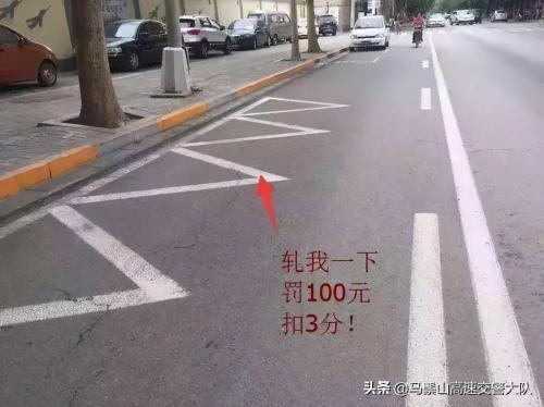 这种标线的含义是注意前方路况,提示前方有车停靠或存在障碍物。这种锯齿状标线也有用来提醒非机动车避让临时停靠点内停放的机动车,大家现在懂了吧。