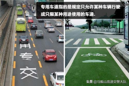 专用车道指的是规定只允许某种车辆行驶或只限某种用途使用的车道,其他车辆、行人不得进入。专用车道可以分为人行道、非机动车道、公交专用道,机动车道。专用车辆中通常有黄色和白色标线。黄色标线又分实线和虚线两种。