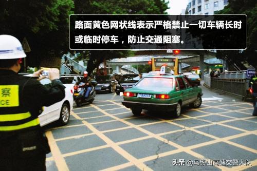 路面黄色网状线表示严格禁止一切车辆长时或临时停车,防止交通阻塞。当黄色网状线前方有车辆停驶时,后车必须在黄色网状线外等候,直到确认黄色网状线前方有足够空间停驶本车时,方可驶过黄色网状线。需要注意的是不论停车或是等候交通灯都属于违章行为。黄色网状线是施画在重要国家机关、军队、大型企事业单位和公交枢纽门前,确保车辆进出时不致被门前拥堵车辆堵住的措施。