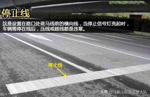 停止线大家也很熟悉,就是在路口处斑马线前的横向实线,当红灯亮起时,车辆需停在线后,压线或超线都是违章。