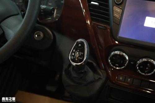 既然是房车,我们先说车,凯伦宾威ZK5045XLJ2动力系统采用意大利原装进口3.0T柴油增压发动机,满足国五排放标准;匹配8速自动变速箱,并带有ECO、PWR两种动力模式,P挡采用较为流行的按键式操作,挡把造型设计和做工都不错。
