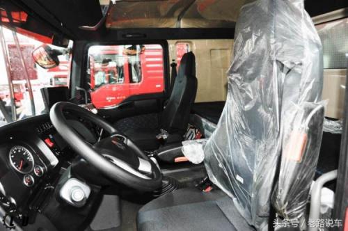 左右两侧座椅均采用气囊减震,与四点悬浮气囊减震的驾驶室相配合使舒适性提高了很多。而座椅的左右两侧也安置了可调节的扶手,驾驶员可根据扶手下方的黄色拨轮来进行高度的调节。