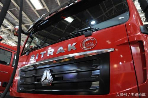 2009年,德国MAN购买了重汽25%的股份,成为重汽的股东。重汽引进了整套德国MAN的生产技术,包括D08、D20、D26柴油机技术,也就有了我们所看到的重汽MAN驾驶室。但重汽将该款驾驶室进行了优化设计,前脸部分增添了许多棱形线条,融入了不少重汽的特色。前面板上SITRAK一串镀铬英文字母十分显眼,在字母右侧的是浩淼科技的LOGO。