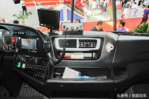 工作台也非常亮眼,四副式多功能方向盘的立体感十分强。方向盘的左侧为车辆媒体工具操作按钮,而右侧是定速巡航的设置。工作台的布局和普通载货版本的汕德卡一模一样,但由于中控台的空间比较紧凑,额外的显示器和无线电只能安装在工作台的顶部。整体布局虽然和MAN的驾驶室相同,但是重汽还是融入了自己的内饰元素,将TGA的驾驶室改造的比较现代化。