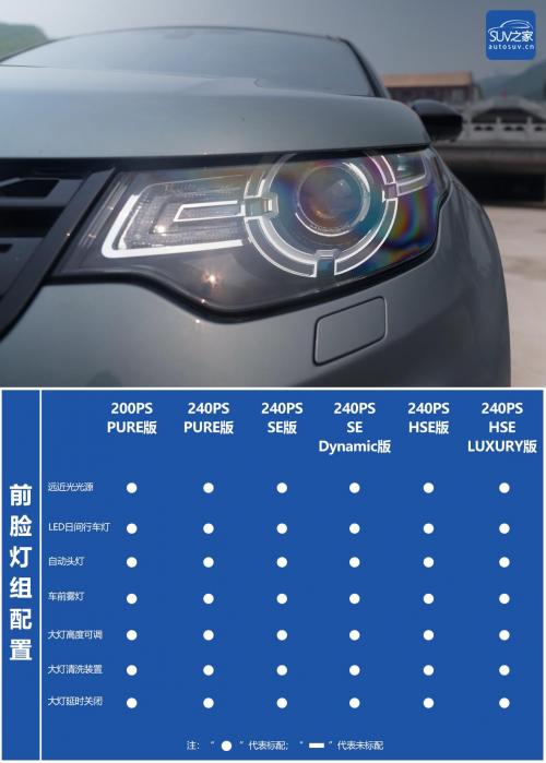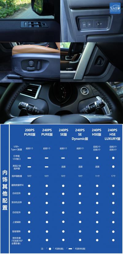 2019款路虎发现神行共有两种不同动力版本的车型可供消费者选择。其中指导价为34.68万元的200PS PURE版本是整个车系中唯一一款动力为200马力的车型,它也是整个车系中的最低配车型。而在搭载相同发动机的高功率版车型上,根据配置的不同,车型指导价则从240PS PURE版的36.58万元的到顶配240PS HSE LUXURY版本的50.08万元。二者之间还包含SE、SE Dynamic以及HSE这三个版本的车型。分别为39.48、41.38、45.28万元的售价,这也给予了消费者更加宽泛的自主选择权。那么在全系车型中,各个车型之间的价格差异又体现在哪些地方呢?