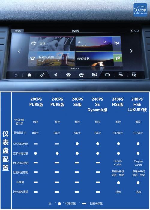 配置方面,2019款路虎发现神行全系车型之间的差距还是比较大的,但标准配置丝毫没有让消费者失望,即便是在入门定位的PURE版本车型上,18寸铝合金轮毂、全景天窗、一键启动、前排10项调节的主驾驶电动座椅、双区自动空调等豪华、实用性配置一应俱全。不过论科技配置,还属顶配车型与次顶配车型最为亮眼,其中Carplay、Carlife以及车联网等功能想必是绝大多数消费者所爱好的配置,但相应的车型价格似乎会让你犹豫不决。