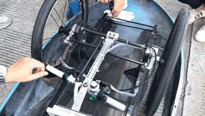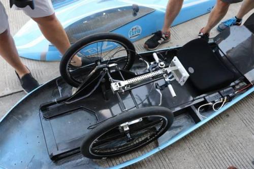 为了减重,车队车轮一般都选择自行车车轮,轮胎的选择要看各车队资金的多少了,好的用光头胎、定做、国外进口等等,差的就是普通自行车车轮。另外,部分设计将车轮轮圈用东西包裹密封,以减小辐条的扰流。好的轮胎,滚动阻力系数很小,车圈越轻越好,一般采用铝合金材料。
