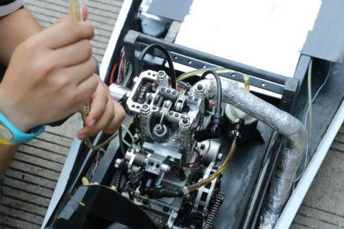 这些赛车虽然看上去比较小,但是“麻雀虽小,五脏俱全”,它的制作过程根本上就是一辆汽车的制造过程。为了减轻重量,赛车的车体、车壳都需要采用轻量化材料,大部分车队采用的是不锈钢管作为骨架,在保证安全的同时也降低了重量,而广汽本田车队则运用了碳纤维的车身骨架和车壳,更为轻盈。