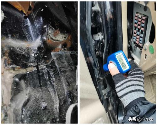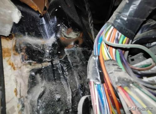 来到内饰,巨星我很自然地扒开地毯,结果却让人十分震惊,小王在一边也不刷手机了,目瞪口呆看着眼前的景象,只见门槛里面的腻子水将大线包裹得严严实实,这要是把大线腐蚀了,后果真不堪设想,而且门槛下边也变形了,这得多大的撞击力度啊。