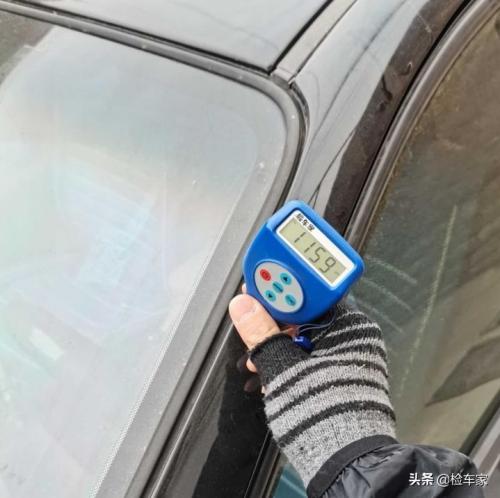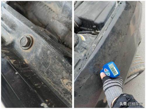 不用说,翼子板也肯定是钣金修复。但也有出过事故漆面数值确实正常的情况,那只能说明是更换过的,而这台车明显价值太低或者前车主觉得没有更换的必要。