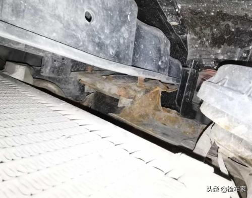 其实检测到这里,小王已经迫不及待要提刀去找卖家了,不过还是要再把底盘简单过一遍,直奔主题采样取证,明显发现纵梁梁头变形都与防撞梁都贴不上了。妥妥的事故车一枚,事故车就算了,维修得还那么糙,作为一名曾经的修理工我发自内心送给前车主一个国际手势,不带这么坑人的啊,不是,坑学生啊。
