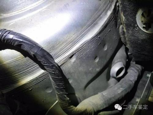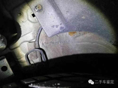在以前的文章中我也讲过,这个时候一定要在看一下车轮内侧的钣金胶状态,因为减震器支架是坐落在车的纵梁上面的: