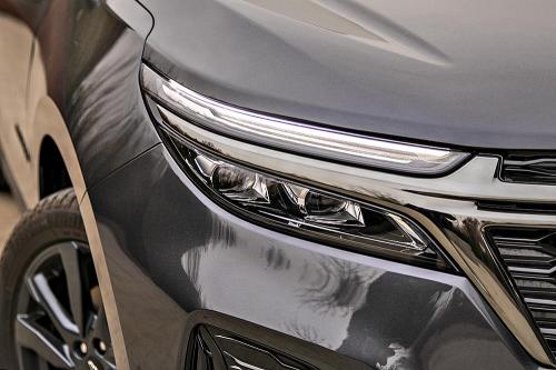 分体式大灯造型更加犀利且全LED光源是全系标配,相比老款而言,新款取消了前雾灯,但是这也让保险杠两侧线条设计也变得更加激进,符合车头的整体调性。另外,可以看到在车头处有四颗雷达,保证了低速行车的安全性。