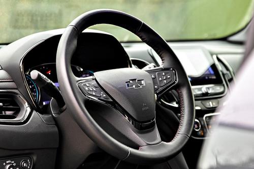 三幅式方向盘与雪佛兰其他车型一致,左右两边为多功能操作按键,盘符尺寸适中,握着手感也算不错。