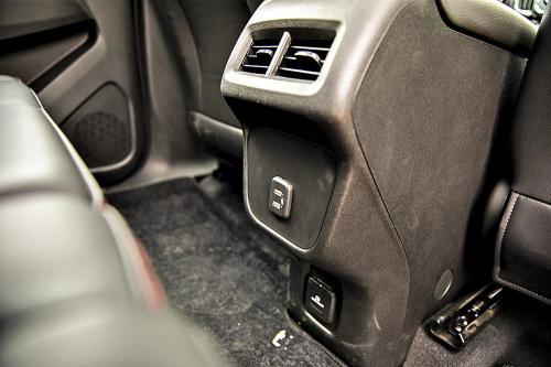 后排座椅非常宽大而且舒服,后排还提供独立空调出风口以及外接设备接口,当然唯一不足是后排中央位置没有头枕。全景天窗尺寸足够大,可以降低车内压抑的感觉。