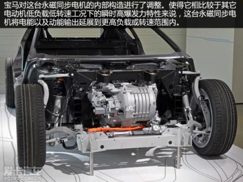 为了将前部主电动机的输出保持在最高效的范围内,宝马给它配上了一个两速自动变速箱。这就减弱了电动机高速输出衰弱的现象。当然,有了变速箱的帮助,电动机的转速也并非像往常那样扶摇直上,相对合理的转速区间也让能效更加优秀。优化电量使用的同时可以让它匹配更小的电池组,话题似乎又回到减重方面了。