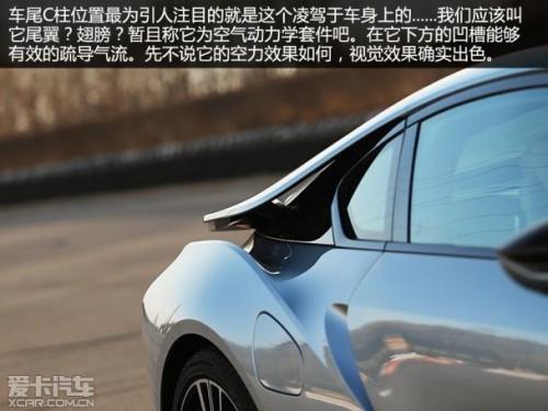 我想用尽可能华丽的辞藻去形容这辆i8的外观设计,但却发现我有些词穷。除了能用科幻形容它外,i8也的确是一辆美得令人窒息的超跑。对比同价位车型来说,你会觉得其他超跑简直就是上个世纪的设计。除了这个双肾型格栅外,我们再也无法从它身上找到一丝一毫的宝马元素。我们或许可以将它看成是宝马未来设计的一个趋势,又或是宝马设计师脑洞大开的一个想法罢了。