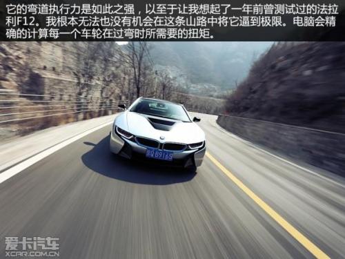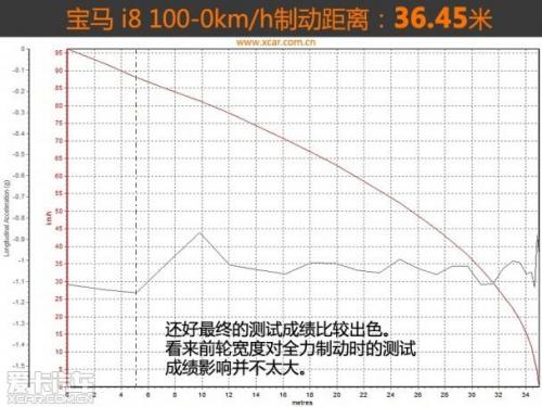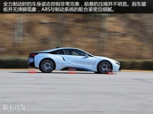 首先值得肯定的是制动姿态。短前悬设定使得i8在全力制动时并无明显的点头现象。制动过程中,制动力的释放较为均匀,ABS与制动系统的配合也值得肯定。不过随着全力制动时的重心前移, 215mm宽的前轮是否能够提供充足的摩擦力的确让人有些担心。