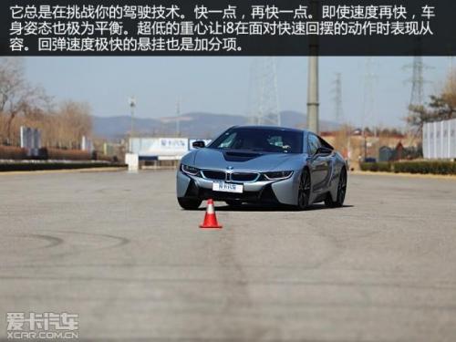 短弹簧行程,敏捷的回弹能力,精准的指向性。这些优点都让i8在绕桩测试时占尽了优势。切换至运动模式后,方向盘也并不会变得更重,但指向性极为精准,方向盘的回转圈数也非常之少。这极大的减少了驾驶员在操作车辆入桩时所需要的精力。绕桩测试对于一款车的行驶安全性测试此时对i8就不那么重要了。因为即使你刻意的想让它犯个错误也不是件容易的事情。