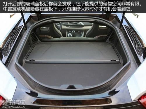 由于i8采用了中置的发动机布局,打开车尾的玻璃罩后你会发现,这辆车的后备厢空间基本被发动机等部件占据。而前文中也提到过,前置的电动机以及冷却系统占据了车头的大量空间,所以i8也不能像其他超跑一样拥有前备厢。