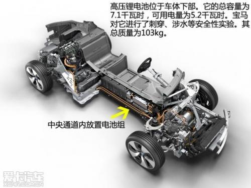 i8的电池组被安置在了车体的下部。不过它并没有像特斯拉那样把电池满铺在了座舱下面,而是放置在了隆起的中央通道内。电池的放置位置降低了车辆的重心,提升了行驶稳定性。当然,它是一辆可以充电的混合动力轿车,利用充电墙盒或是随车自带的充电器均可。
