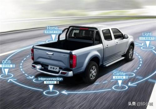 车内,软皮包覆的内饰、仿碳纤维装饰板、9英寸悬浮式中控屏、多功能方向盘、自动恒温空调等给塑造出舒适而富有科技感的氛围,用户只需说出“风骏你好”,便能唤醒语音控制系统,能够实现音乐播放、线路导航、开启空调、查询天气等等功能,给人以新鲜的智能网联体验。值得一提的是,怠速时车内噪音仅为45分贝,给人以安静惬意的新皮卡驾乘享受。