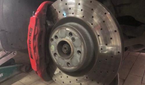 测完半金属和低金属刹车片后小编想到一个问题,我们途虎养车平台上的日韩系车特别多。他们平时接触到的都是高碳配方的陶瓷刹车片,而这台C63是没有适配陶瓷片的。