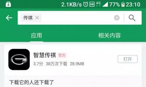 传祺这套系统的装机量还是蛮惊人的,在我手机的那个应用商店里头,下载量达到了38万人次,这还没算上iPhone用户。很多人都只记得第一款互联网汽车是谁,却不知道,其实传祺早在2009年前后就开始研发智能网联系统,也是目前智联系统装车量最多的一个车企,达到40万辆以上。
