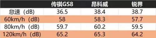 诸如种种的手法,传祺GS8在静音性上就有着非常不错的表现,譬如在怠速状态下,它的噪音只有36.5分贝,而120km/h时速下,GS8的噪音值也只是65.2分贝而已。同等条件下,昂科威的成绩分别是38.4分贝和65.3分贝,而锐界为38.7分贝和64.2分贝。