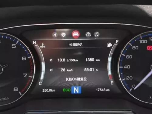 上车后的第一件事,我先看了一下它的长期记忆,累计里程为1380km,平均时速28km/h,看来我同事也是走市区路况的比较多,但油耗有点小惊喜,10.8L/100km,这成绩光看上去似乎有点高,但没有对比就没有伤害!
