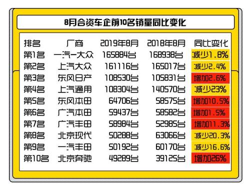 正如前面提到的,桑塔纳车型的销量幅度变动比较大,恰好2018年8月销量处于低点,而2019年8月处于高点,因此出现了同比大幅增长的局面。但从1-8月整体销量看,销量并没有出现大幅度的提升。