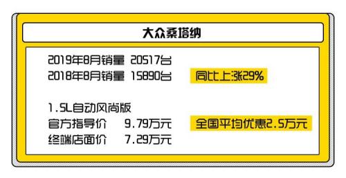 桑塔纳现在店面的优惠幅度也不算小,全国平均优惠在2.5万元,以1.5L自动风尚型为例,目前终端优惠后提车价位7.29万元。优惠的价格吸引了众多消费者,也让这款经典老车能够持续热销。
