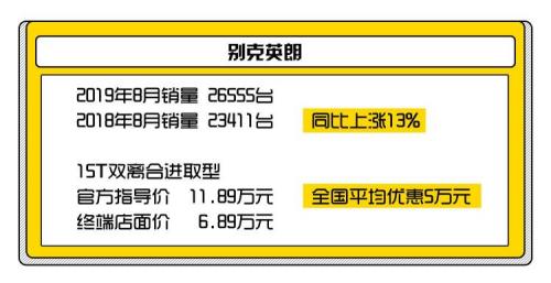 别克英朗在2019年8月份的销量排名轿车榜第5名,共售出2.66万台新车,比去年同期增长13%。从1-8月份的总体销量来看,英朗共售出19.37万台,同比增长高达27%,可以看出,相比去年,英朗的销量确实有着不小的进步。
