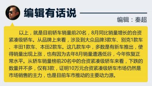 2019年8月份的车型销量数据刚刚出炉,从榜单上看,汽车市场整体大环境仍不容乐观。不过,在销量普遍下滑的大背景下,仍有部分车型销量逆势上涨,成为车市亮眼的一抹红。它们到底是为何逆势上涨?是否有大幅度的促销优惠力度?本篇文章,我们将为大家进行市场调查,为广大网友探寻车市福利。