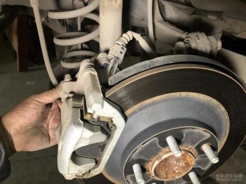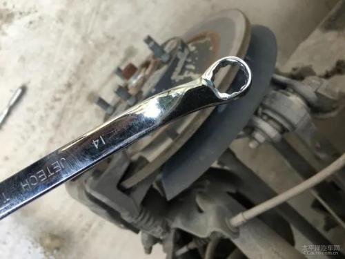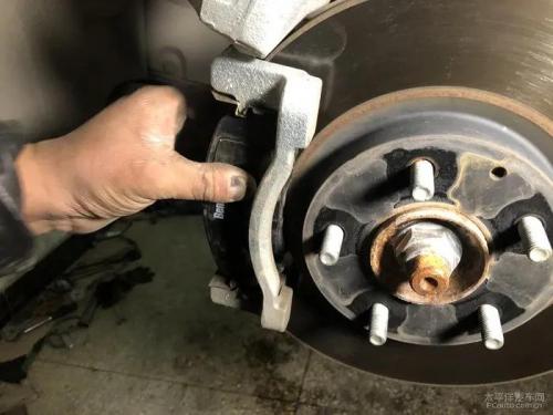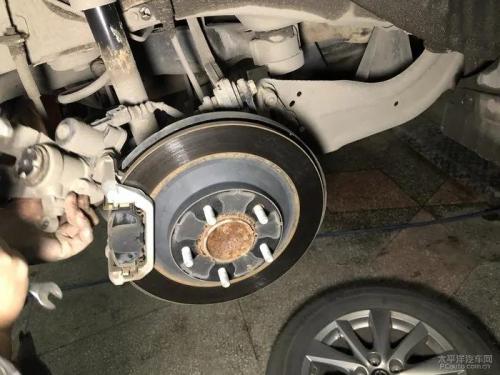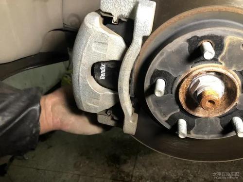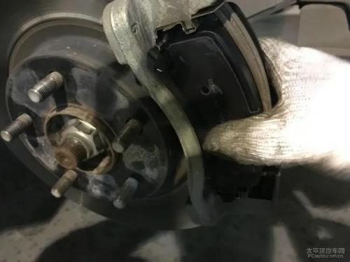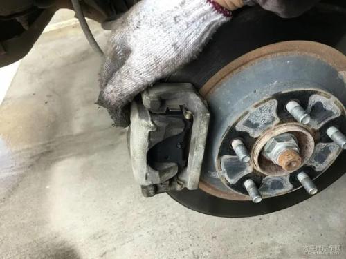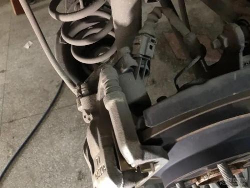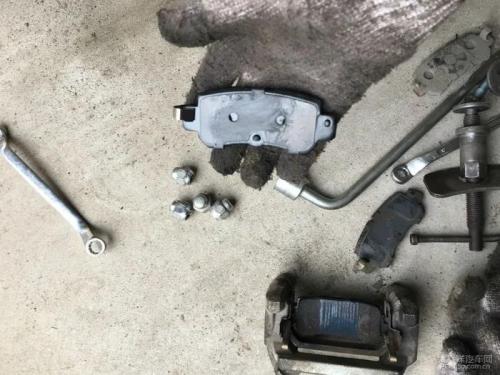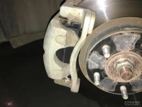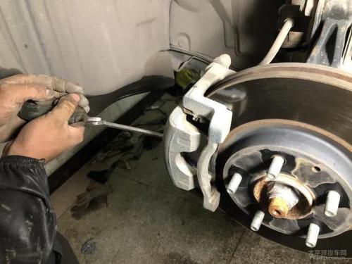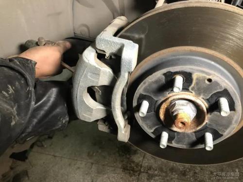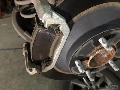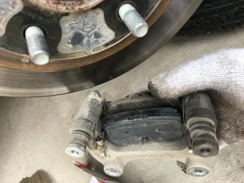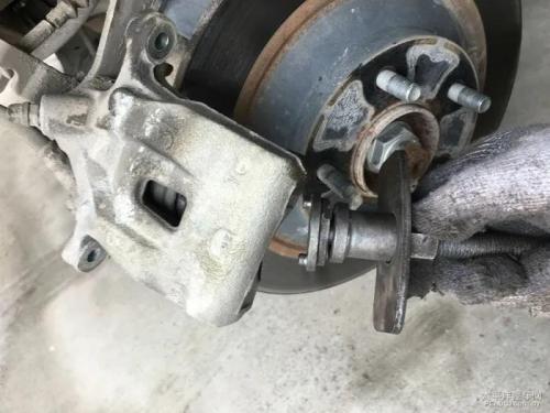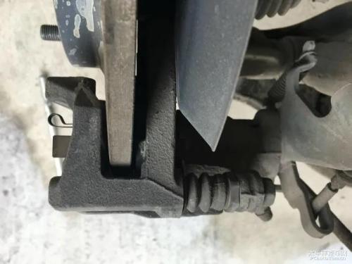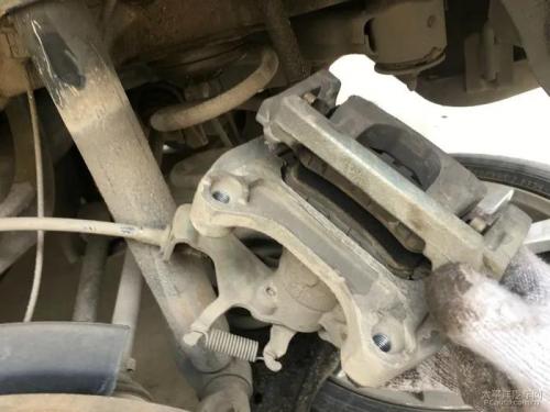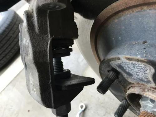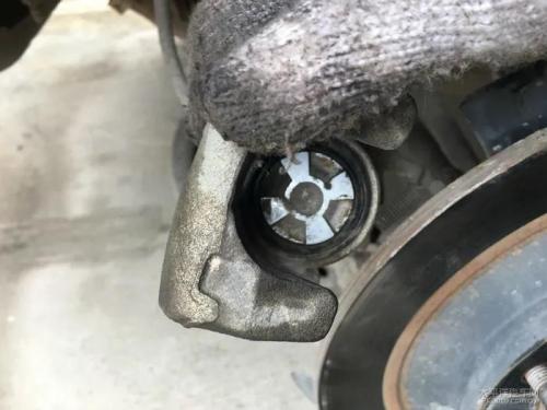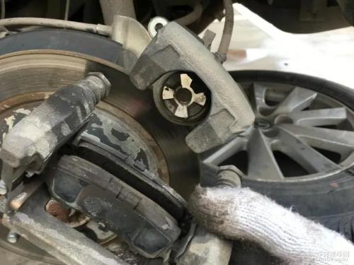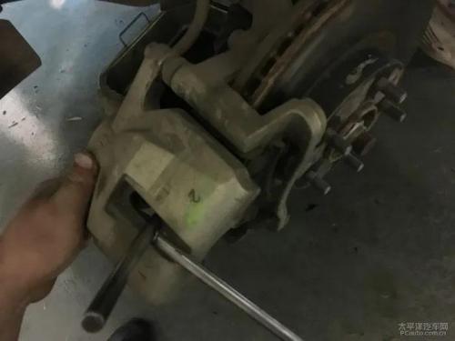 后卡钳带是带手刹,所以必须要用工具旋转将活塞顶回位。