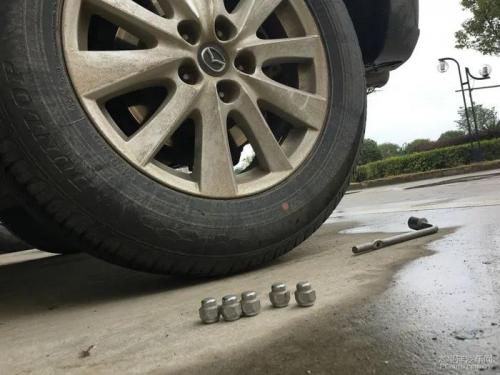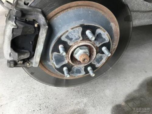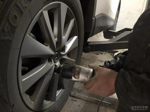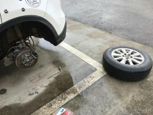 之前很多车友反映,刹车有异响,其实就是原厂的刹车片的问题,所以如果是忍受不了异响的也可以提前更换。拆松4个轮胎的螺丝,将轮胎都卸下来。