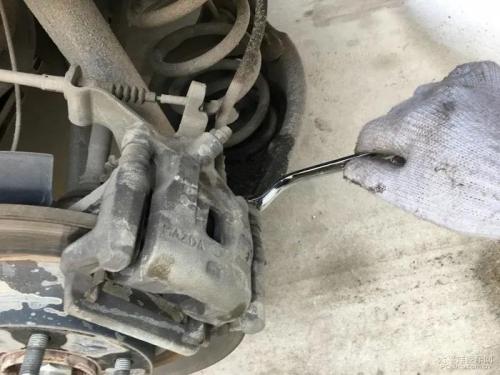 两个后轮的更换都是一样的,需要用工具来顶活塞归位。