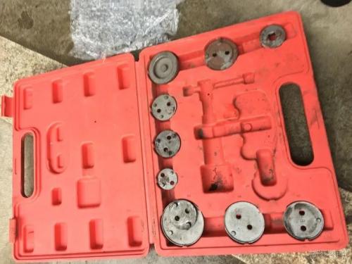 更换前刹车片就简单多了,活塞直接可以撬压复位。用T形的套筒用力压,就可以了。