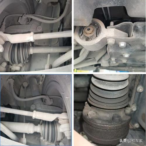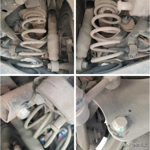 我们可以通过图片清晰的看到两后减震及附件完好,无拆卸更换,但是后期注意底盘橡胶套的老化的情况。