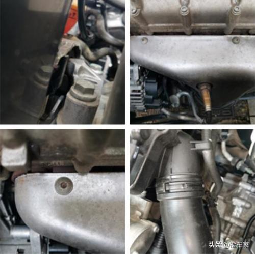 接着检查气门室盖,发现螺丝完好,无拆卸、修复;进气管螺丝完好;排气管隔热垫螺丝完好;发动机右侧机脚螺丝完好。目前看来发动机部分表现还是不错的,可能原车主的用车习惯比较好吧,下面来看看变速箱部分,对于这个车的变速箱,粉丝也很关心。