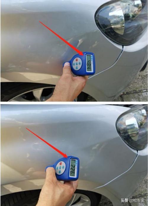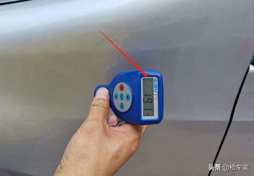 咦,刚拿起设备检测的第一个面:左前叶子板喷漆,看来车主说的天花乱坠,也经不起仪器的检测和我们专业的手法,别以为喷漆就很正常,这里给大家说喷漆也要引起注意,也许不是一道划痕那么简单。