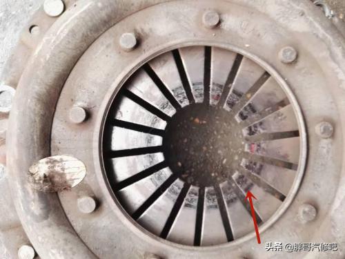 压盘上面弹簧片已经被分离轴承磨出痕迹。