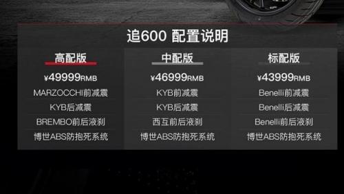 我要说的这款车就是钱江高端子品牌QJMOTO旗下的劲擎•追600,标配车型官方指导价为43999元,中配版车型为46999元,高配版车型为49999元,主要差距就是一些配置上的差异。我们简单地给大家介绍一下!