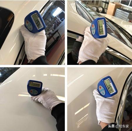 接着借助辅助设备对整车外观金属覆盖件检测下来车辆漆面数值在150um~180左右浮动,同时覆盖件表面没有喷漆痕迹,可以进一步确定此车目前为原车漆面。
