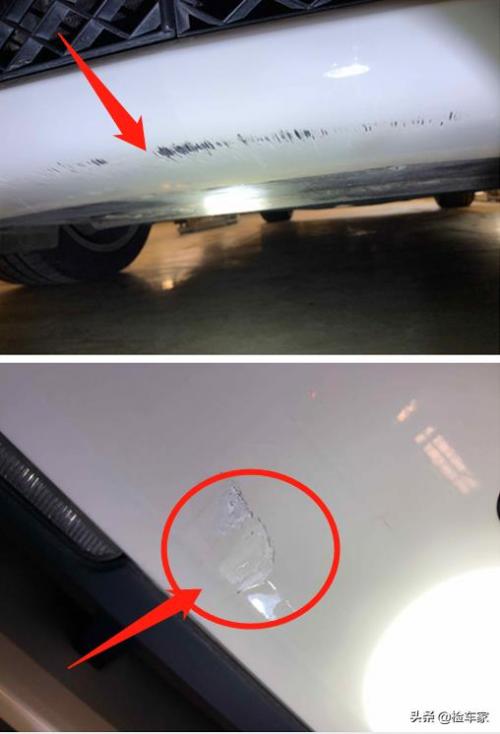 检查前后杠边角处有无二次喷漆形成的飞漆,脏点,经过仔细检查后并没有发现喷漆痕迹,边角处十分圆润,并无二次喷漆造成的漆面分层,只不过有剐蹭掉漆和细微的划痕而已,后期进行点漆和抛光处理即可。