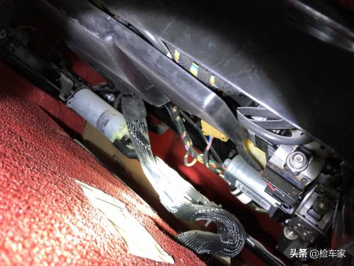 车内座椅底部同样也比较干燥,座椅底部滑轨及线束内部没有异常的泥沙和锈迹,底部各个部件出厂日期与车子出厂日期相符,同时座椅固定螺丝没有拆卸拧动错位痕迹,进一步确定此车无水泡现象。